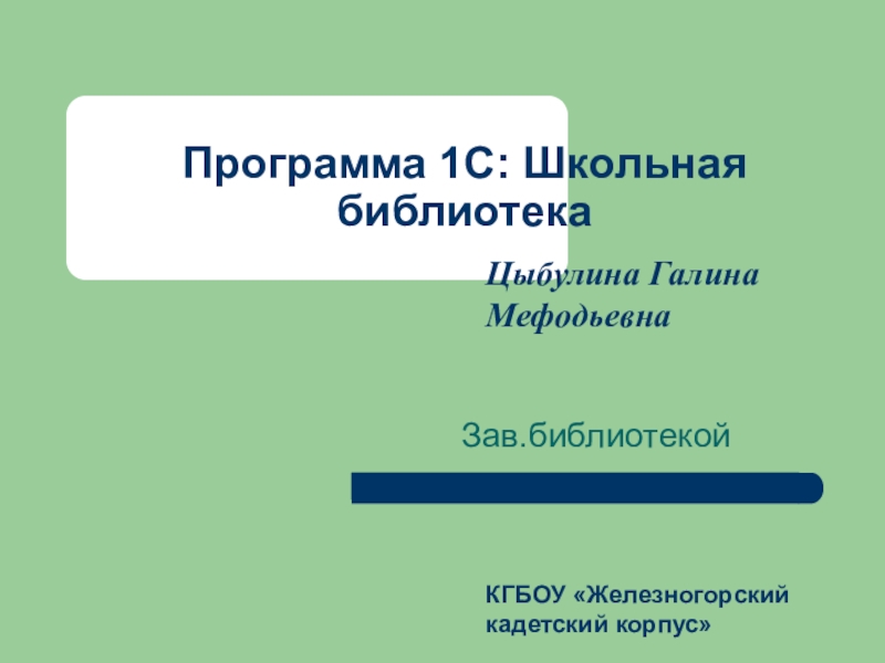 Программа 1С: Школьная библиотекаЗав.библиотекойЦыбулина Галина МефодьевнаКГБОУ «Железногорский кадетский корпус»
