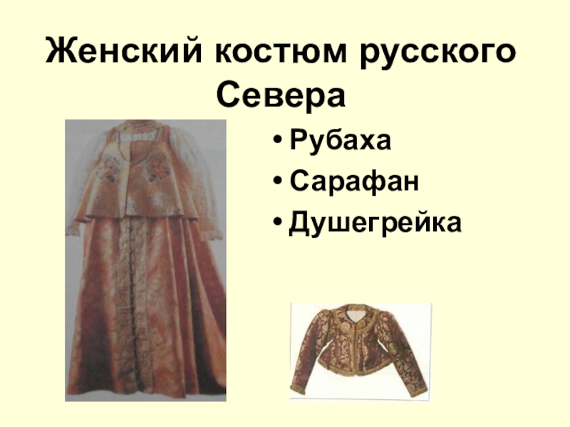 Женский костюм русского      СевераРубахаСарафанДушегрейкаПлатКокошник