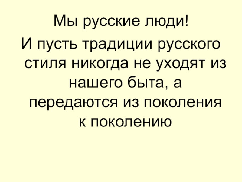 Мы русские люди! И пусть традиции русского стиля никогда не уходят из нашего быта, а передаются из