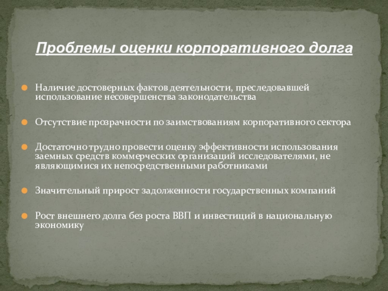 Проблемы оценки корпоративного долга