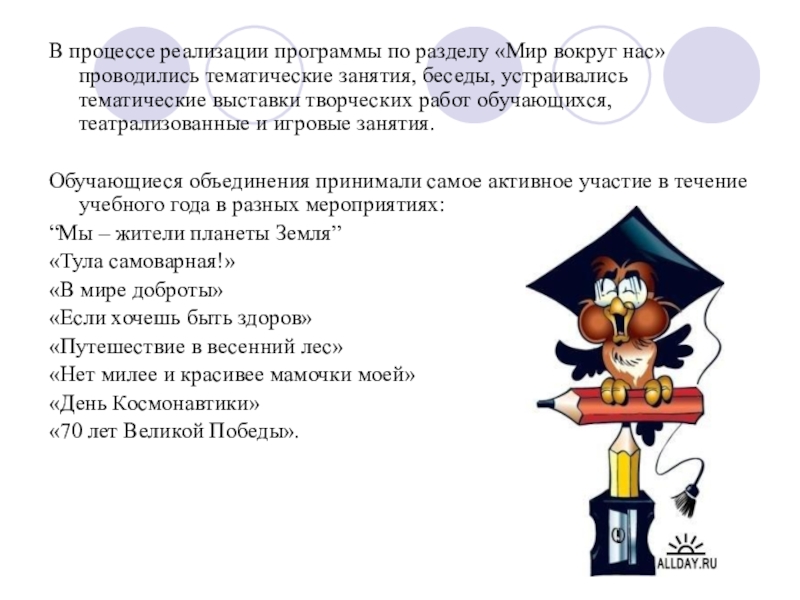 Слайд 29В процессе реализации программы по разделу «Мир вокруг нас» проводились тематические