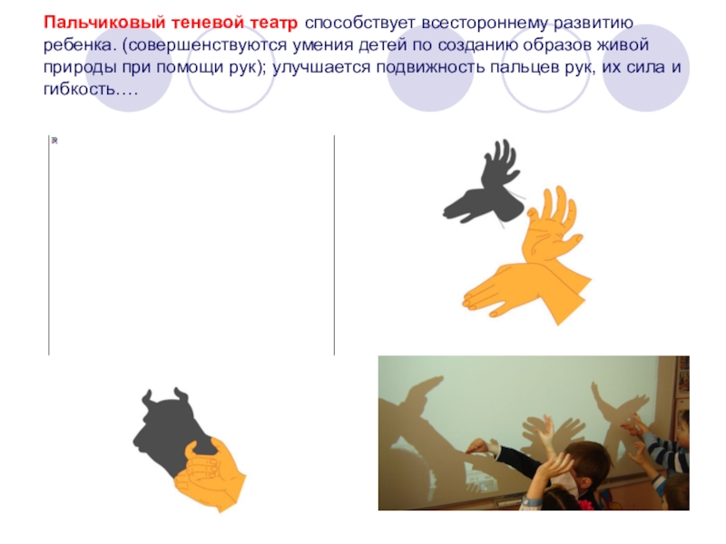Пальчиковый теневой театр способствует всестороннему развитию ребенка. (совершенствуются умения детей по