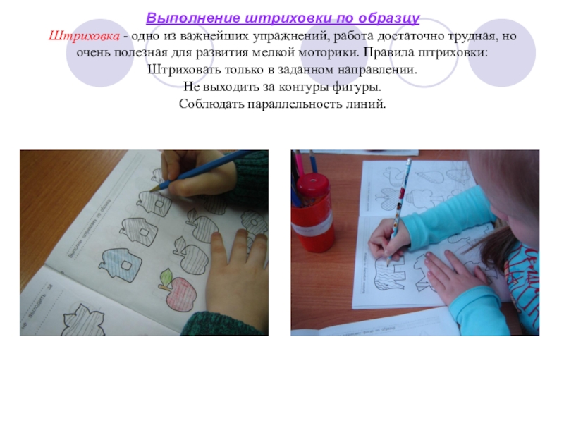трудная, но очень полезная для развития мелкой моторики. Правила штриховки:
