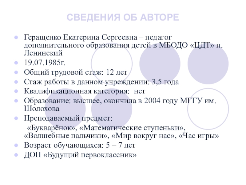 Слайд 2Геращенко Екатерина Сергеевна – педагог дополнительного образования детей в МБОДО «ЦДТ»
