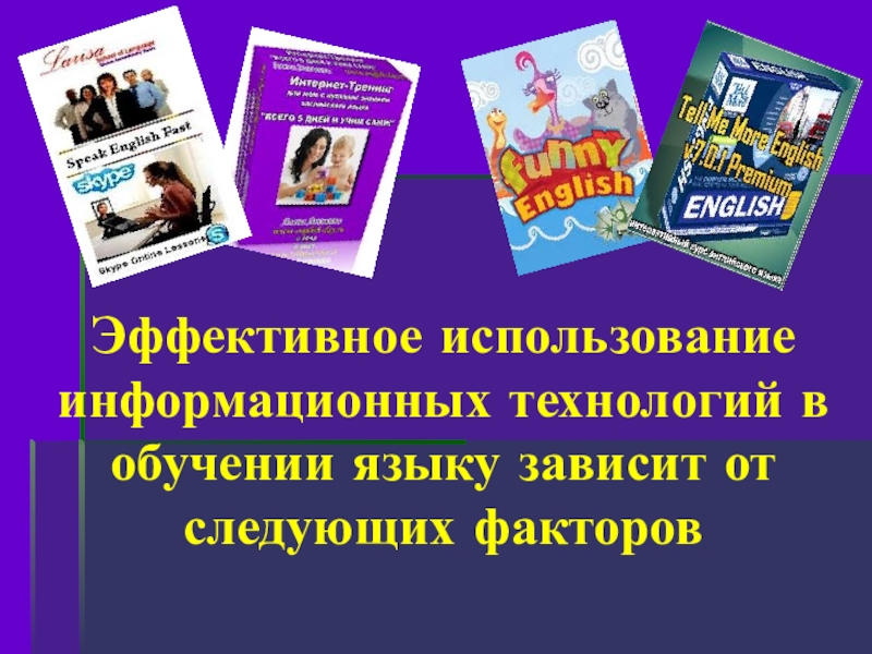Слайд 8Эффективное использование информационных технологий в обучении языку зависит от следующих факторов