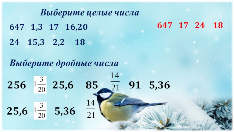 Выберите дробные числа