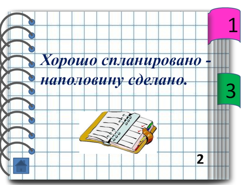 2Хорошо спланировано - наполовину сделано.