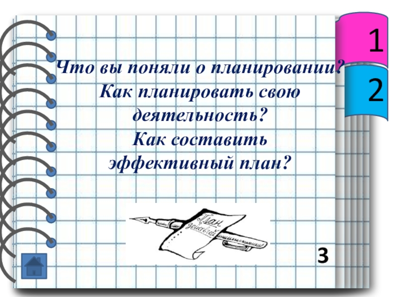 3Что вы поняли о планировании?Как планировать свою деятельность?Как составить эффективный план?