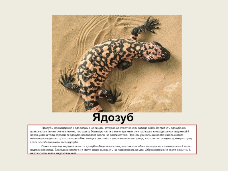 Ядозубы принадлежат к ядовитым ящерицам, которые обитают на юго-западе США. Встретить