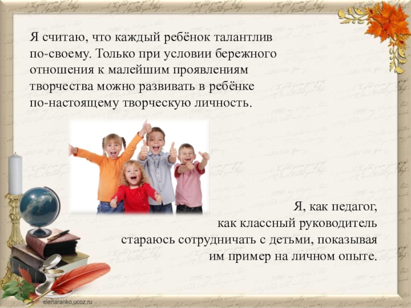 Слайд 4Я считаю, что каждый ребёнок талантлив