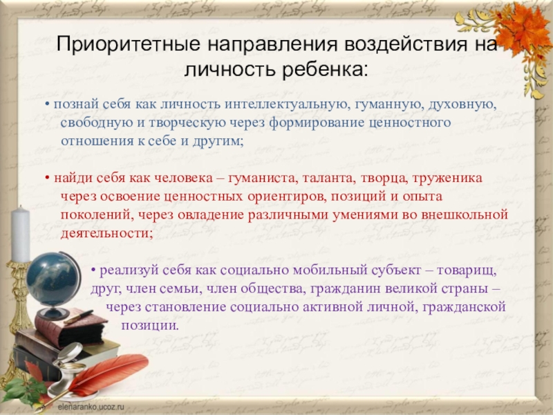 Слайд 7Приоритетные направления воздействия на личность ребенка: