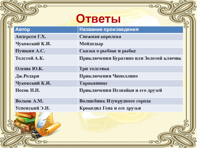 Слайд 4Ответы