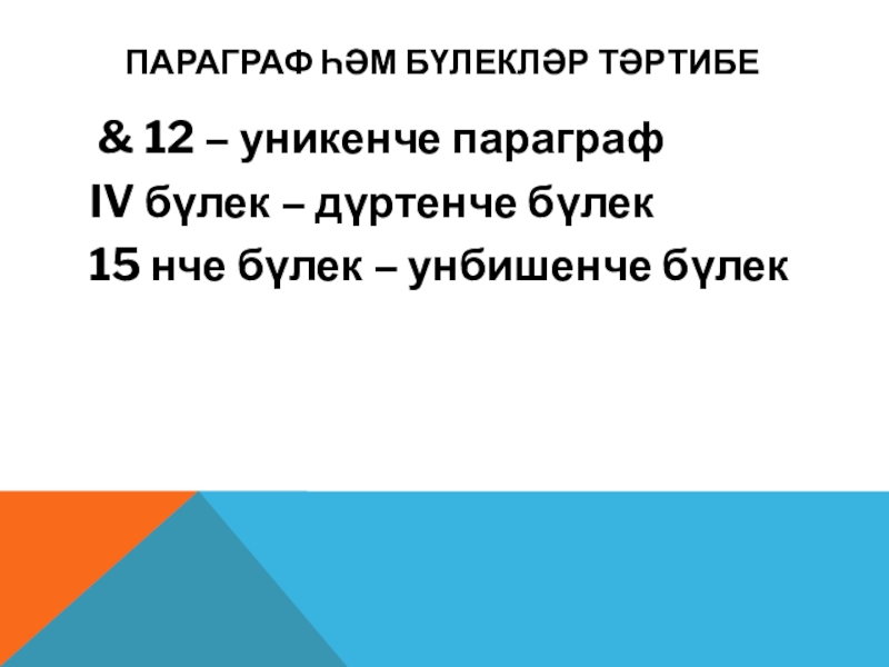Слайд 10 Параграф һәм бүлекләр тәртибе