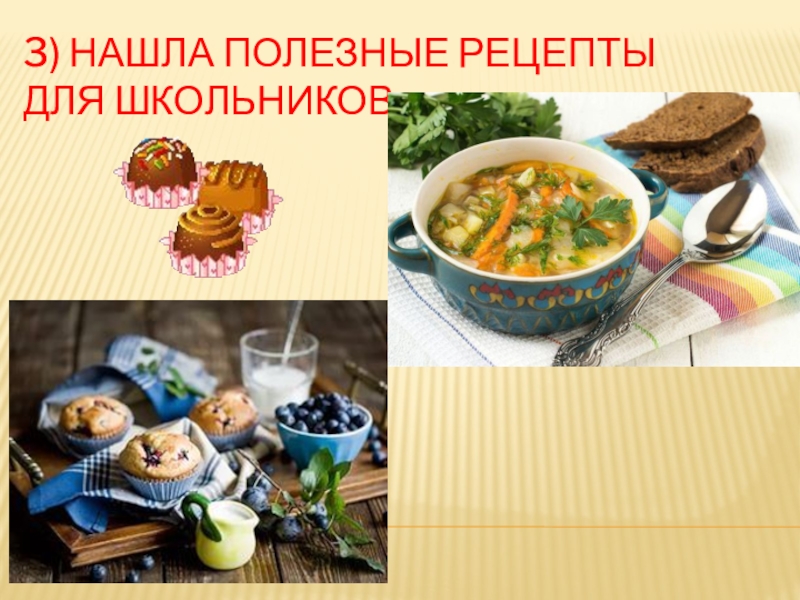 Слайд 103) Нашла полезные Рецепты для школьников: