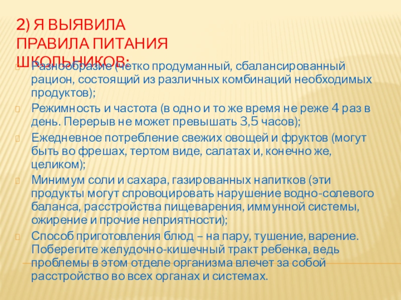 Слайд 92) Я ВЫЯВИЛА ПРАВИЛА ПИТАНИЯ ШКОЛЬНИКОВ: