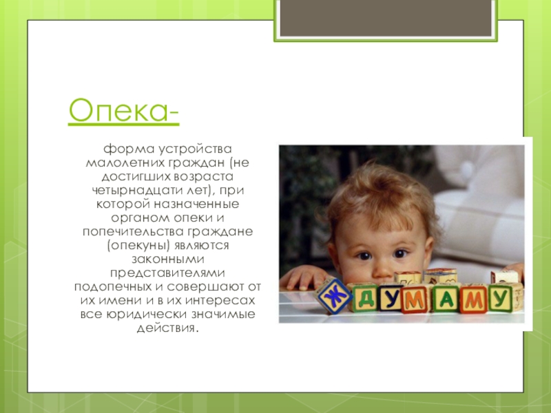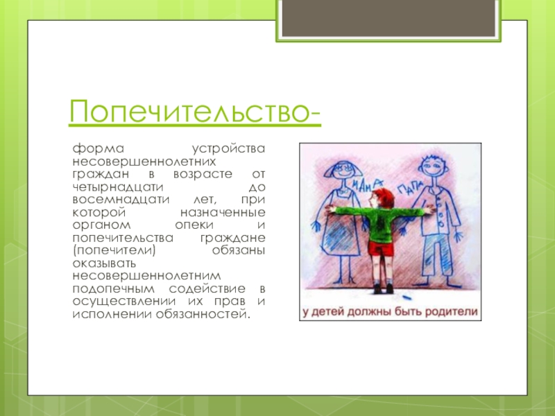 Слайд 14Обязанности по опеке и попечительству исполняются