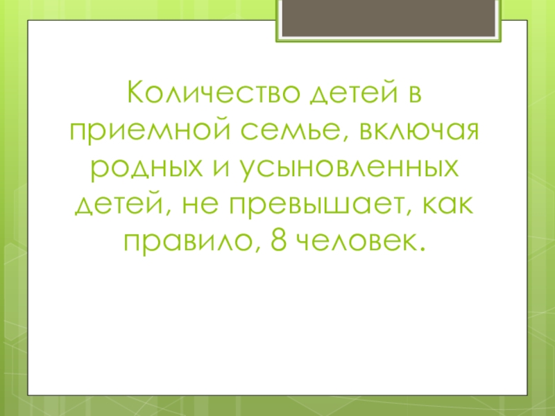 Слайд 18Количество детей в приемной семье, включая родных и усыновленных детей, не