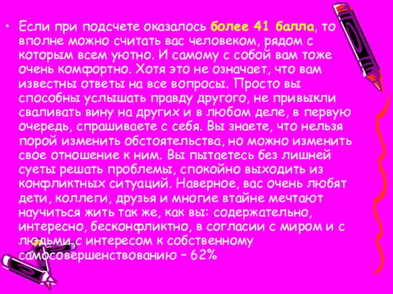 Слайд 11Если при подсчете оказалось более 41 балла, то вполне можно считать