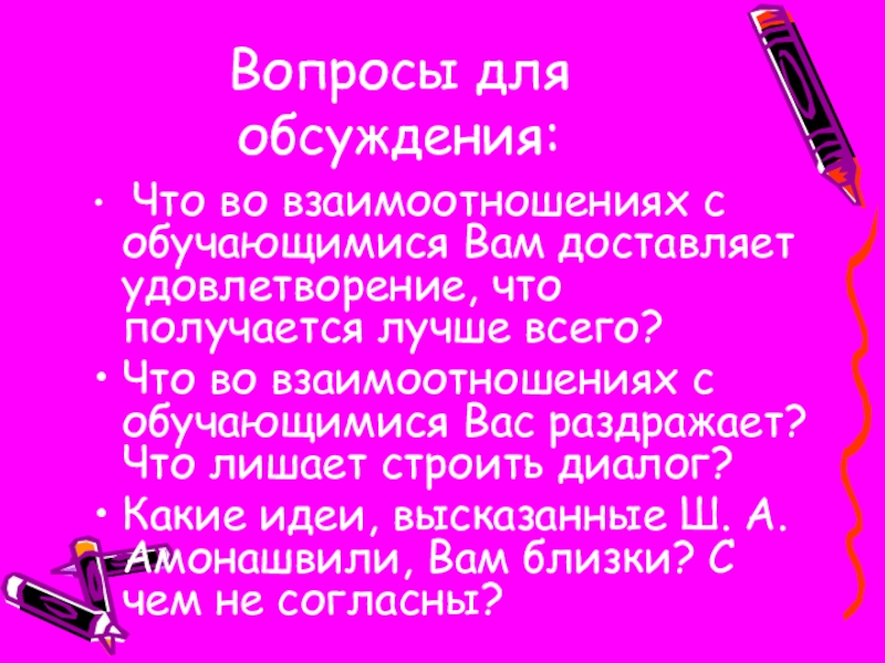 Какие идеи, высказанные Ш. А. Амонашвили, Вам близки? С чем не согласны?