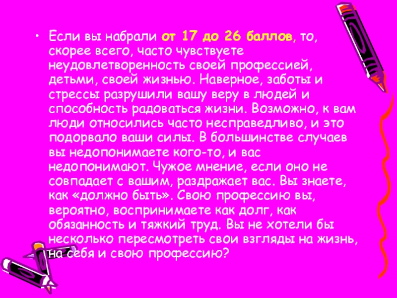 Слайд 9Если вы набрали от 17 до 26 баллов, то, скорее всего,