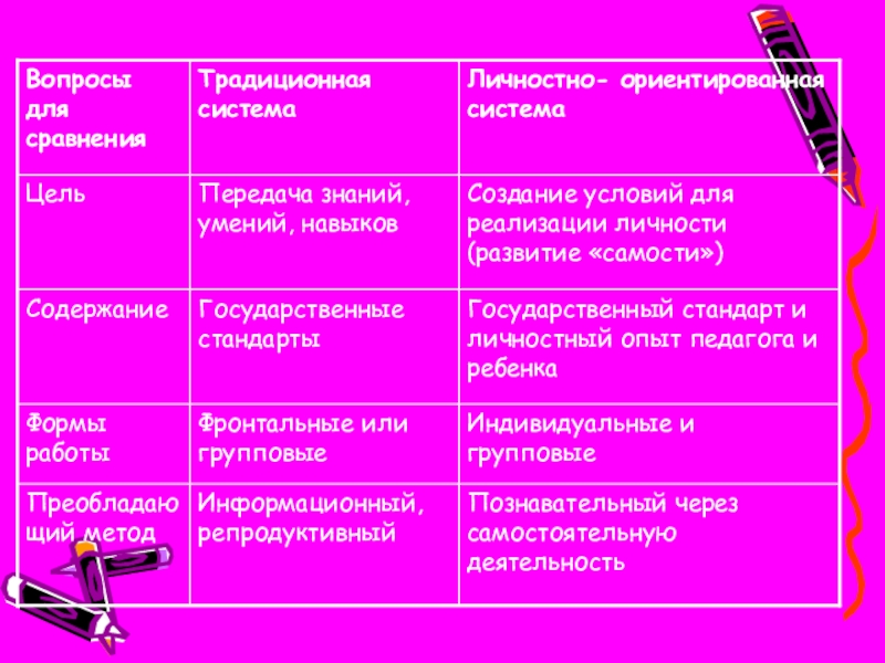 «Сравнительная характеристика традиционной системы обучения и личностно-ориентированной систем образования».