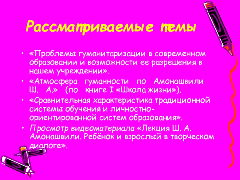 «Атмосфера гуманности по Амонашвили Ш. А.» (по книге I «Школа жизни»).