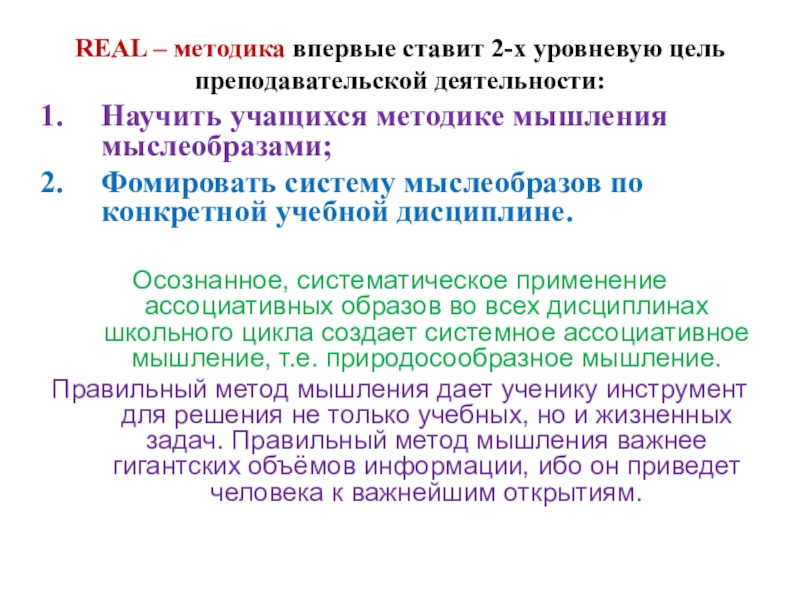 Цель: сформировать учебный мыслеобраз как единицу знания по учебному предмету, заложить его в долговременную память ученика и научить его пользоваться новым мыслеобразом.