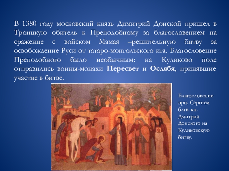 Благословение прп. Сергием блгв. кн. Дмитрия Донского на Куликовскую битву.