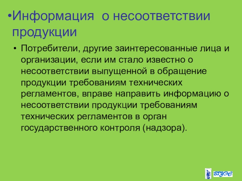 им стало известно о несоответствии выпущенной в обращение продукции требованиям технических регламентов, вправе направить информацию о несоответствии продукции требованиям технических регламентов в орган государственного контроля (надзора).