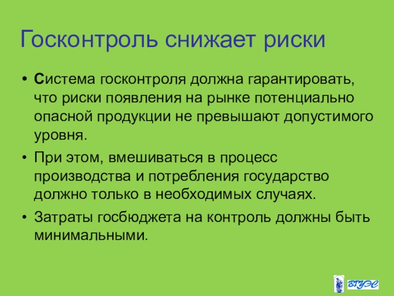 Система госконтроля должна гарантировать, что риски появления на рынке