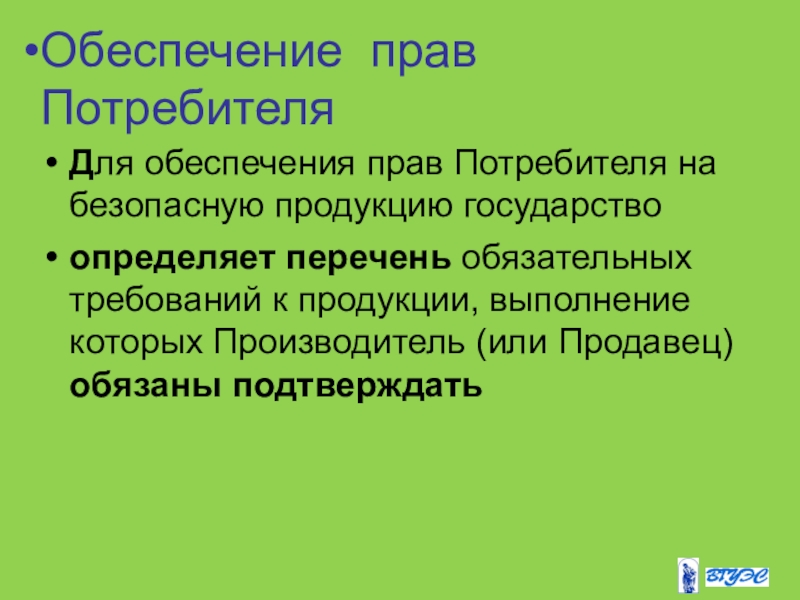 Для обеспечения прав Потребителя на безопасную продукцию государство