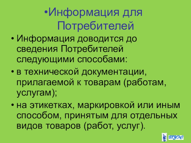 на этикетках, маркировкой или иным способом, принятым для отдельных видов товаров (работ, услуг).