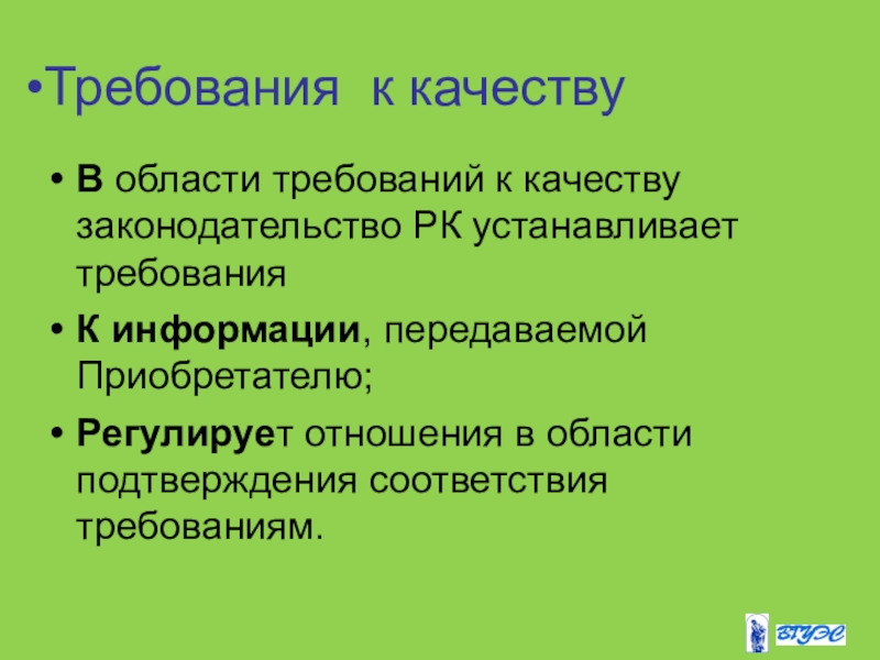 Регулирует отношения в области подтверждения соответствия требованиям.