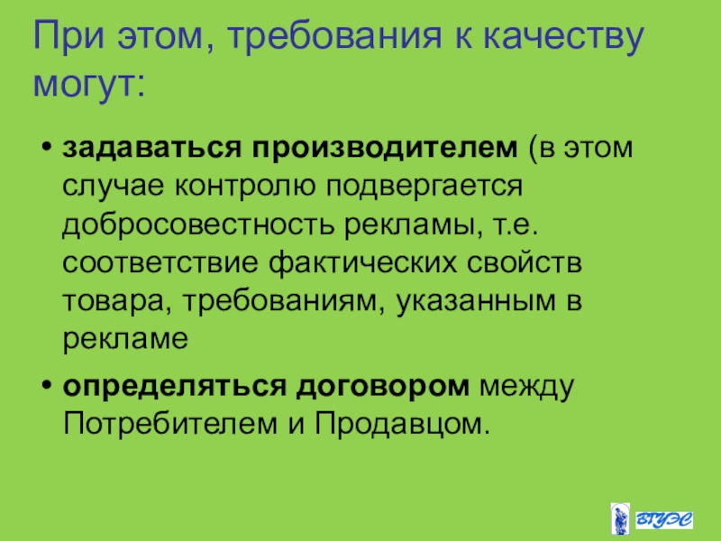 подвергается добросовестность рекламы, т.е. соответствие фактических свойств товара, требованиям, указанным в рекламе