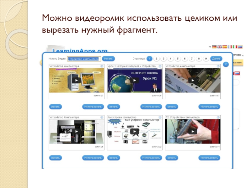 Аудио/видео контент (Видео со вставками) «Устройства компьютера» – http://learningapps.org/display?v=7d5b24ct