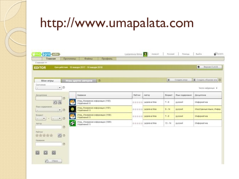 Это сайт презентаций, где можно хранить и обмениваться своими презентациями, докладами, проектами, шаблонами в формате PowerPoint с другими пользователями. Мы помогаем школьникам, студентам, учителям, преподавателям хранить и обмениваться учебными материалами.