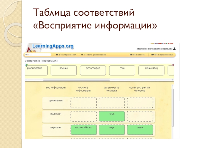 Matching matrix – Таблица соответствий «Восприятие информации» - http://learningapps.org/display?v=fjykk7vc
