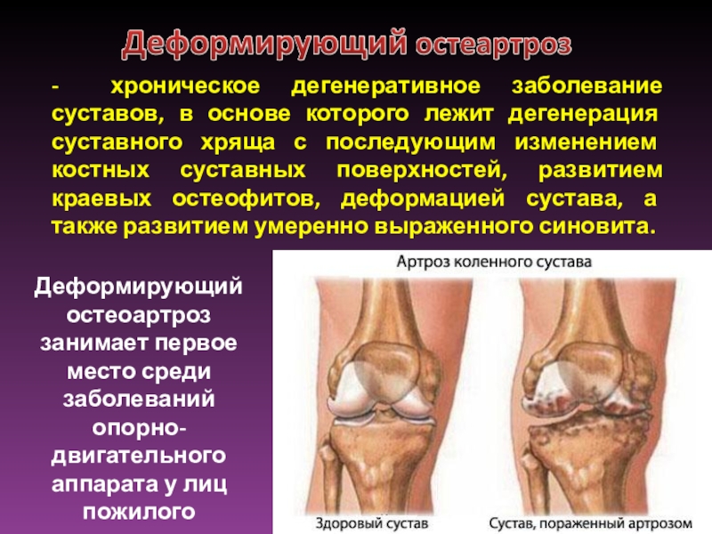 Деформирующий остеоартроз занимает первое место среди заболеваний опорно-двигательного аппарата у лиц пожилого возраста.