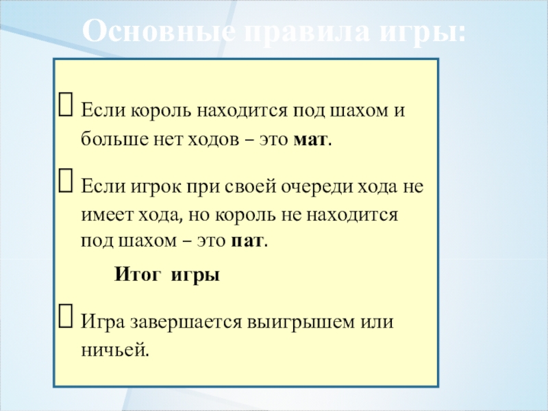 изложить основные правила игры;