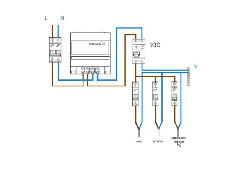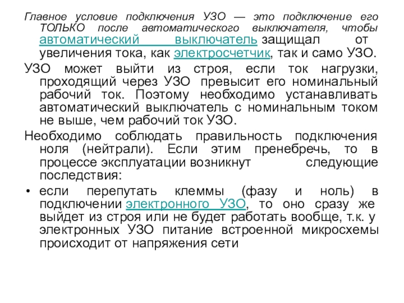 Главное условие подключения УЗО — это подключение его ТОЛЬКО после автоматического