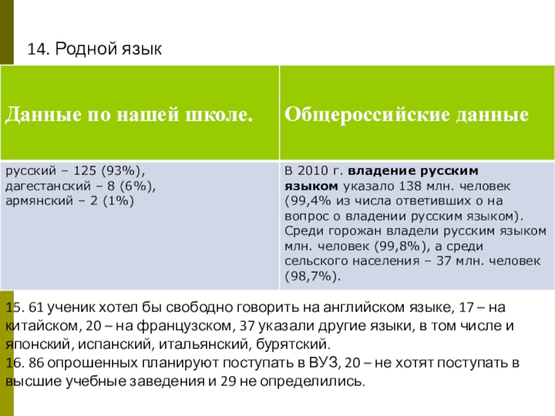 15. 61 ученик хотел бы свободно говорить на английском языке, 17