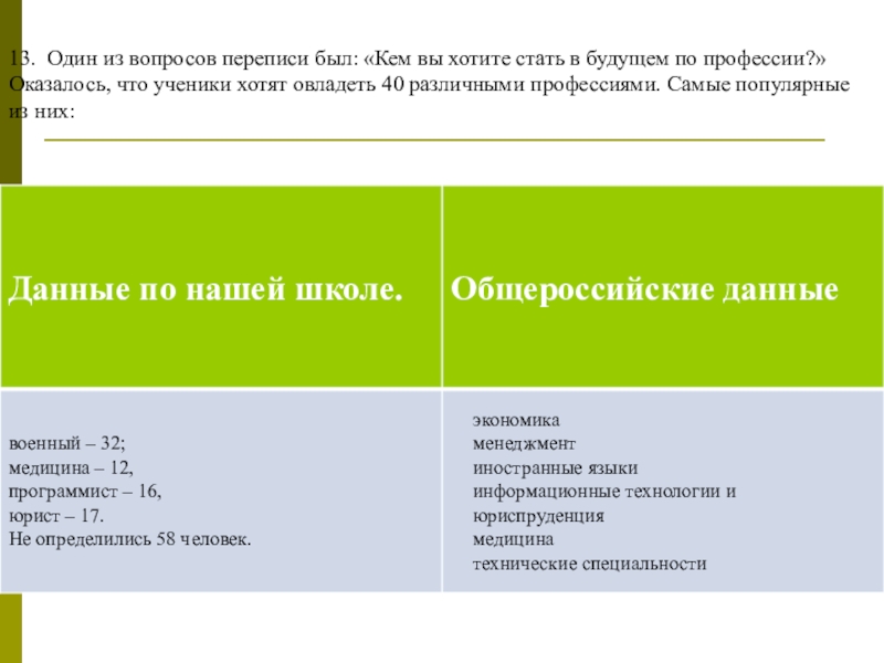 13. Один из вопросов переписи был: «Кем вы хотите стать в будущем