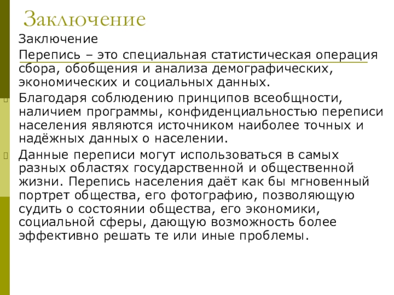 Перепись – это специальная статистическая операция сбора, обобщения и анализа демографических,