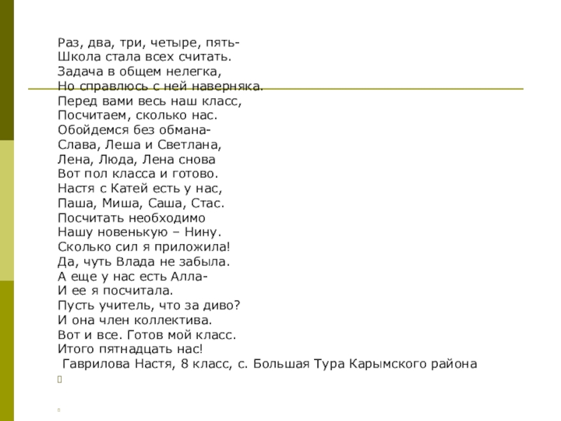 Гаврилова Настя, 8 класс, с. Большая Тура Карымского района