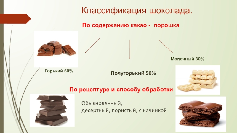 В составе шоколада 3 компонента: какао-тертое, какао-порошок и