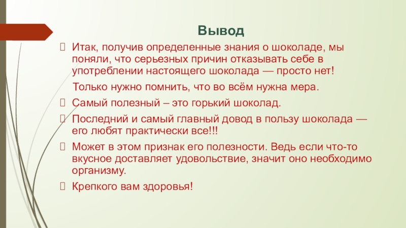 Итак, получив определенные знания о шоколаде, мы поняли, что серьезных причин