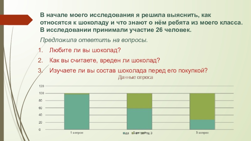 Слайд 6В начале моего исследования я решила выяснить, как относятся к шоколаду