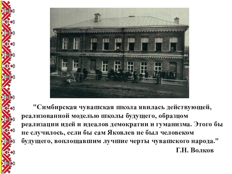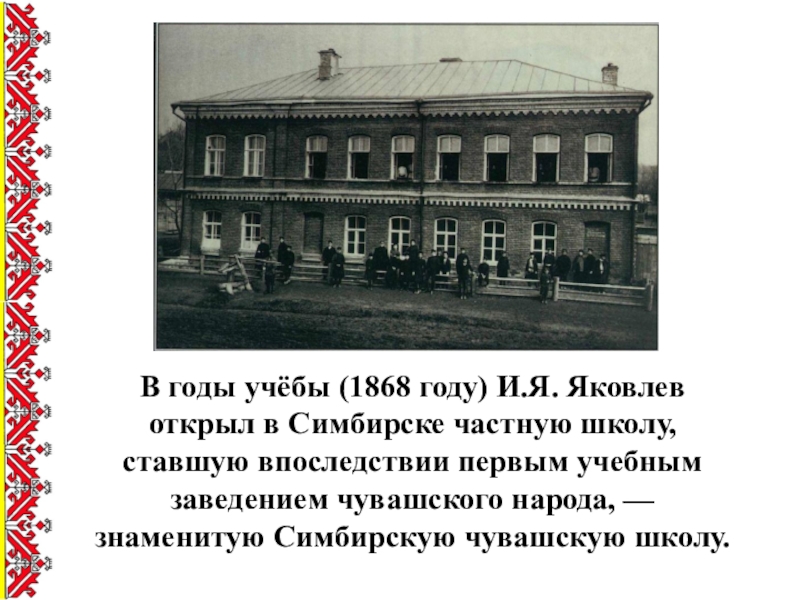 Слайд 1Симбирская чувашская учительская школа – детище И.Я.Яковлева