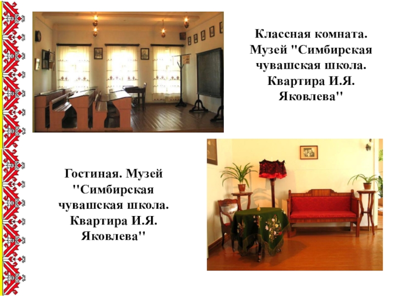 Слайд 13Классная комната. Музей ''Симбирская чувашская школа. Квартира И.Я.Яковлева''