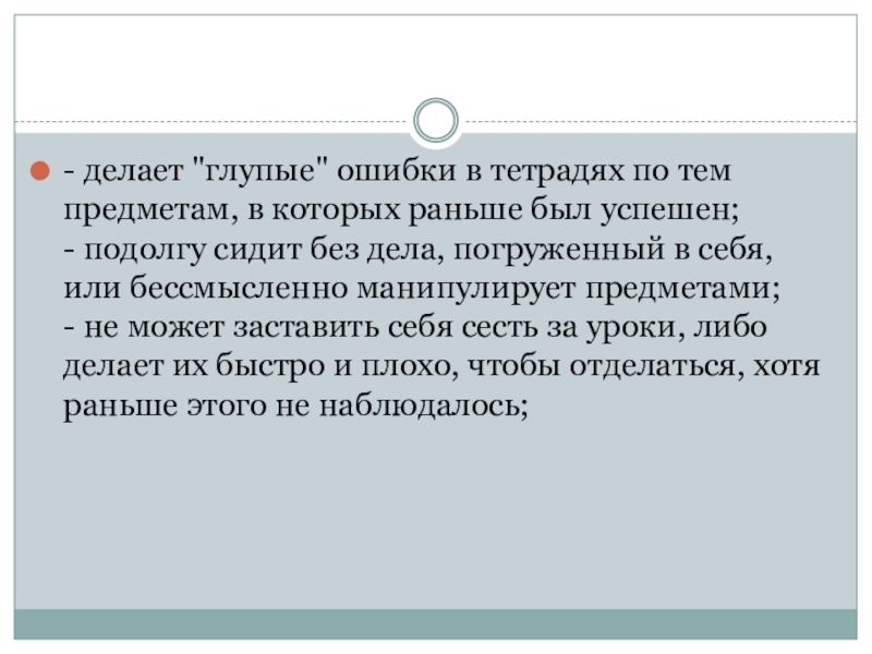 Слайд 4- делает "глупые" ошибки в тетрадях по тем предметам, в которых